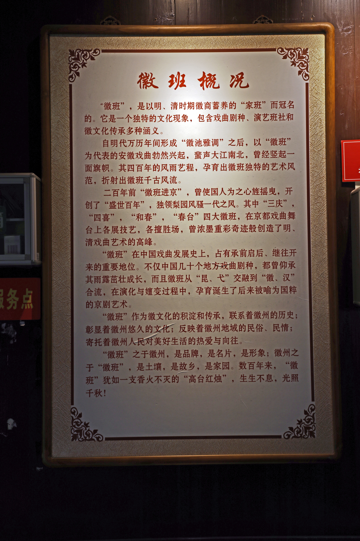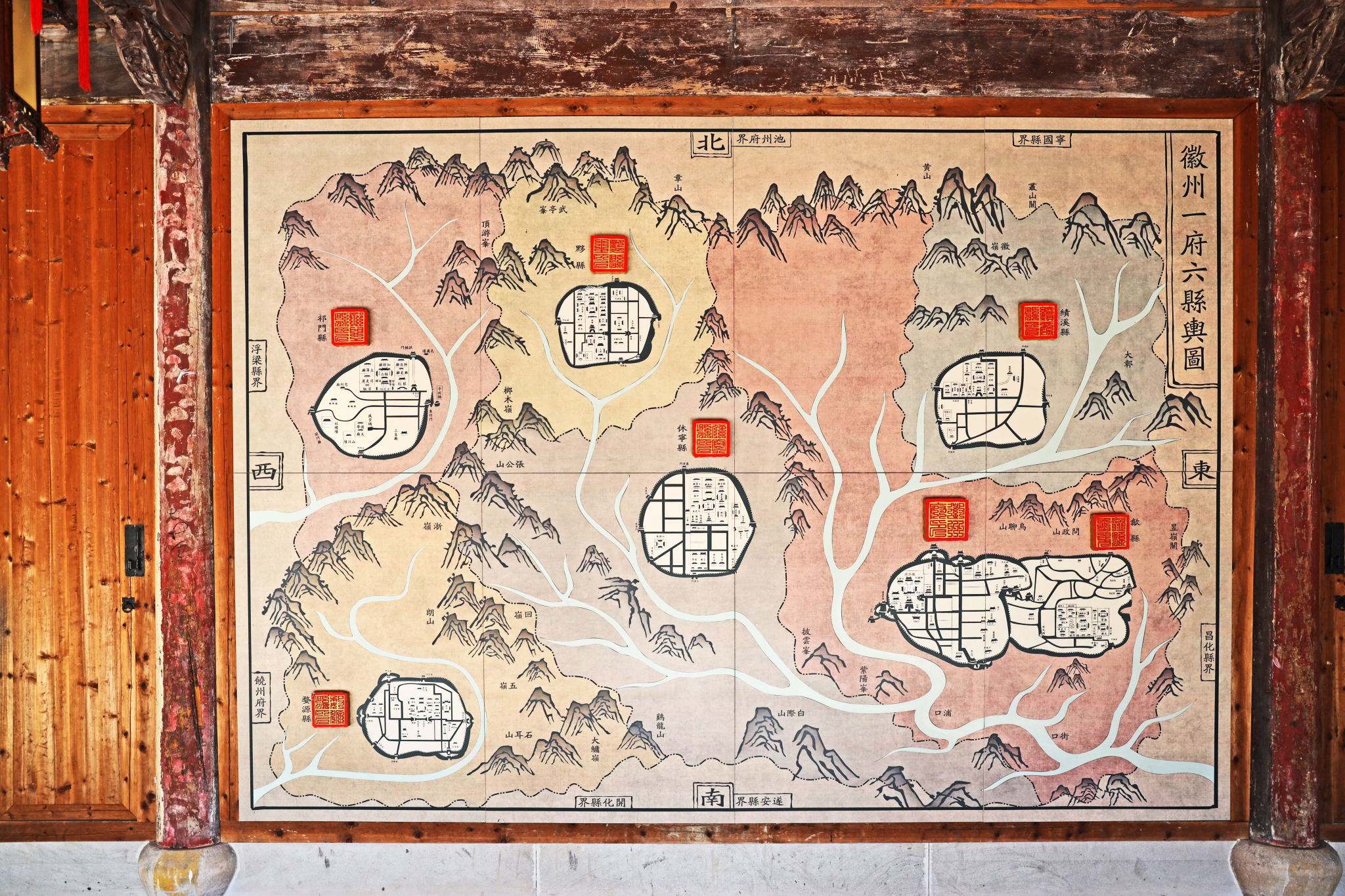 【 老城】内一处高墙大院,这里是【徽班进京博物馆】,记述了徽班进京的传奇历史。何谓【徽班】顾名思义,当是徽人之戏班。 它有四百年的历史并有着辉煌的艺术创造与贡献,最突出的是它吸纳、融合、磨炼出一个占了大半个 中国 和五十多个剧种的戏曲声腔——皮黄,造就了一个伟大的剧种——京剧,成为【京剧之父】。 【徽班】既有历史的辉煌,又有艺术的遗存,更有丰富的经验。对其进行全面、系统而深入的研究,既是对历史做出真实的反映,又可对现实提供很好的借鉴,也当对未来留下有益的思考。古城的游览时间大约2-3小时。【旅游信息】门票:票价:80元起。***免费政策:儿童***米以下、70周岁以上老人免票;***优惠政策:儿童身高***米之间、60周岁-69周岁老人凭相关证件(身份证、老年证)购买优待票。开放时间:8:00 —17:00交通概况: 古城自驾车路线: 景区内景点和景点之间距离不短,自驾游是最好的选择,实在不行就坐当地的公交车和摩的,尽管如此去其他景点的时间也需不少。自助游线路介绍:A线:渔梁——太白楼(赠点)——徽园——许国石坊——陶行知纪念馆——斗山街B线:徽园——许国石坊——陶行知纪念馆——斗山街——渔梁——太白楼(赠点)【渔梁坝】位于 安徽 省 市 徽城镇渔梁村,渔梁坝始建于唐代,明代重建,距今有近1400年。是 中国 古代著名的水利工程之一,也是 古代最大的水利工程。渔梁坝可蓄上游之水,缓坝下之流。无论灌溉、行舟、放筏、抗洪,都可兼而利之。坝长138米,底宽27米,顶宽4米,全部用清一色的坚石垒砌而成,每块石头重达吨余。
