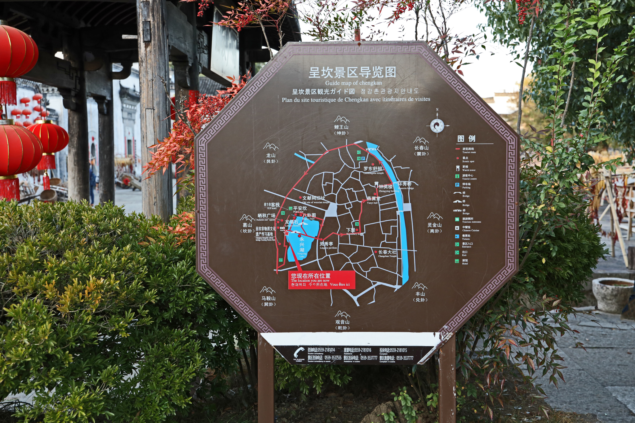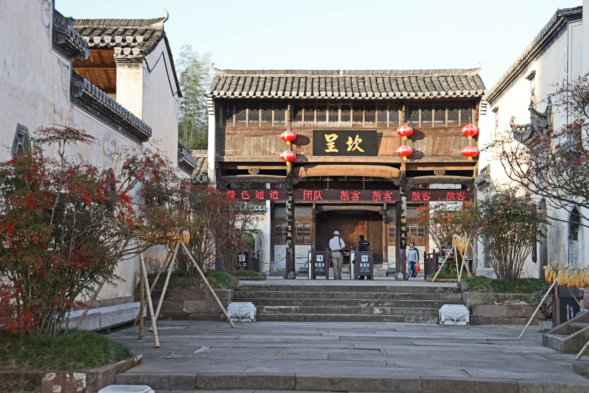 旅游信息:票价:80元 备注:儿童身高***米以下免票;老人70岁以上;军人凭相关证件免票。【地 址】位于 之口, 安徽 省 和 交界处【乘车路线】 市(屯溪)汽车站乘屯溪-- 班车在岩寺下车,到岩寺北站乘岩寺-- 的车【自驾线路】从G3京台高速的【岩寺】( )收费站下高速,沿着一条通往 的公路行驶,沿途有诸多景点的路标,在“ ”停车即可。村游览时间***小时。离开 ,已近黄昏,在夕阳下我们赶往另外一座古村落【八卦村“ 呈坎 ”】。呈坎 ,别名龙溪、八卦村。 市 区下辖镇。是国家AAAAA级旅游景区、 江南 第一村、 中国 古建筑之乡、 安徽 省最佳旅游乡镇。呈坎 按《易经》:【阴(坎),阳(呈),二气统一,天人合一】的八卦风水理论选址布局,依山傍水,形成三街,九十九巷宛如迷宫。是 中国 保存最完整的明代古村落,村里有150余处宋、元、明、清等历史古建筑,其中有49处为全国重点文物保护单位。呈坎 地处青山翠竹之中,集自然景观、人文景观为一体。 呈坎 人杰地灵、人文荟萃、名人辈出,历史文化沉淀深厚,有董其昌、林则徐等历代名人题写的牌匾30余块。 呈坎 自宋代以后徽商兴起,文化教育事业兴旺发达,在 文化历史发展中独树一帜。中国 国画大师刘海粟曾说:登 ,不可不去 呈坎 。 民居甲天下, 呈坎 民居甲 。游 呈坎 一生无坎,好运连连。