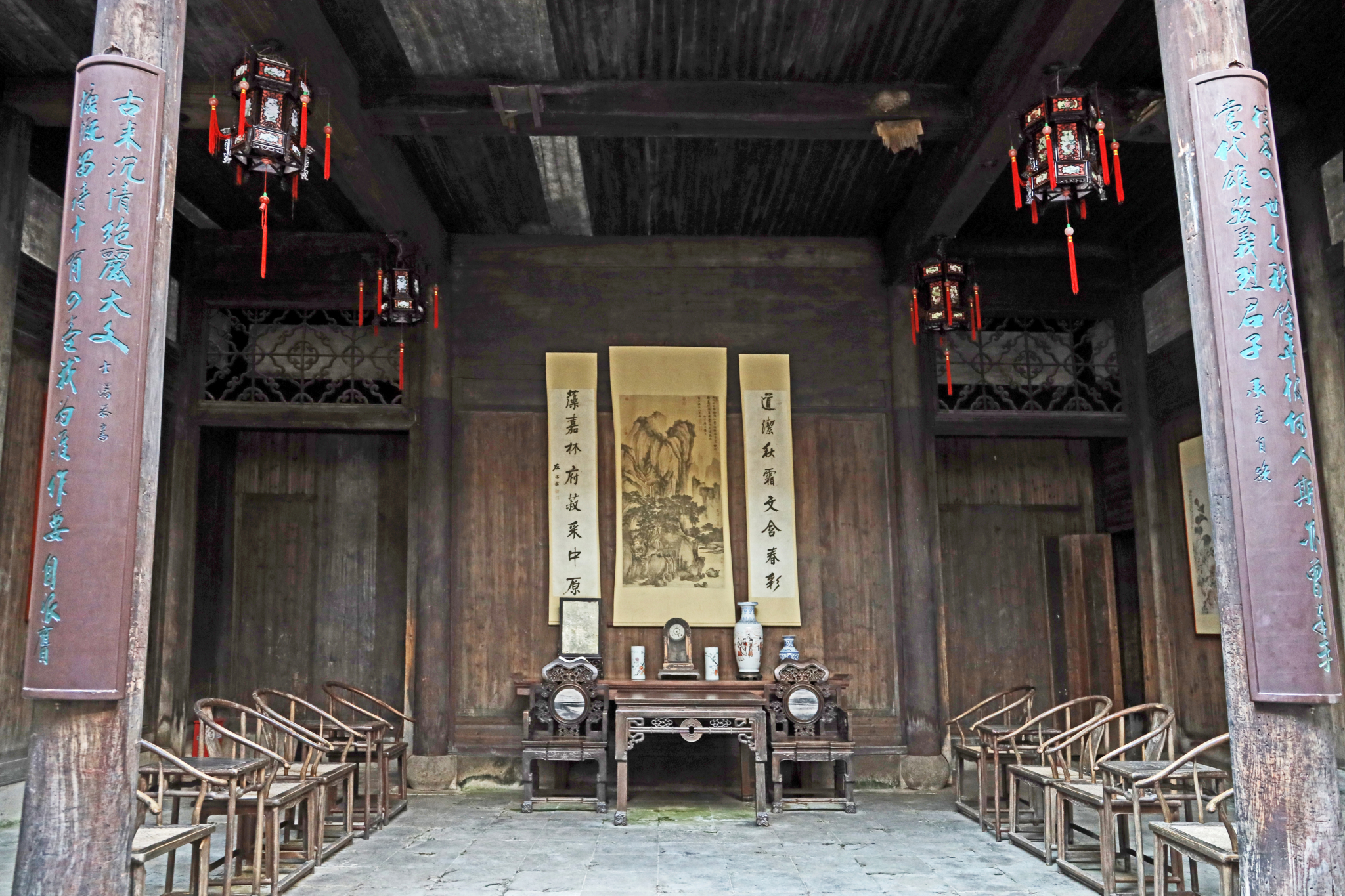 古祠占地五亩余,分前、中、后三进,五层山墙,层层升高,显得气势宏伟威武。第一进为仪门,仪门内是八丈见方的天井,天井两旁为廊庑,第二进为大厅,前方六根方 石柱 巍然耸立, 石柱 之后是二十四根圆木大柱,堂中四根大立柱一人难以合抱。上面檩梁重叠,横直交错,正中的冬瓜梁粗大庄重,现堂上还挂着一块匾额,上书【彝伦攸叙】四字,为明代著名书法家董其昌所书。大厅高大的板门照壁后又是一个天井,其后第三间才是宝纶阁。是整个祠堂的精华部分,相传主持续建此祠的罗应鹤,明万历间曾任监察御使和 大理 寺丞等职,深得明神宗庞信。罗盖之以阁用藏历代恩纶,故名【宝纶阁】,后来约定俗成地称整座祠堂为【宝纶阁】。由于时间仓促没有认真的看完整个院落。 呈坎村游玩时间建议***小时。交通:桔溪县公共基础知识培训 市汽车客运总站( 市屯溪区齐云大道31号,也叫屯溪汽车站)坐直达 呈坎 的汽车,该车也经过 民宅,每天8:00、10:00、14:00、16:00发车。自驾路线: 合肥 -屯溪-沿着G205国道直行- 转盘-右转弯后进入第二个路口-直行到佛子岭路口即可看到指向 呈坎 景区的旅游交通指示牌——直行到达 呈坎 镇政府路口——右 桔溪县公共基础知识培训转直行即可达到 呈坎 景区。这是我在“古城”及周边景点游玩一天的行程路线,供参考。祝你、之行旅途愉快!