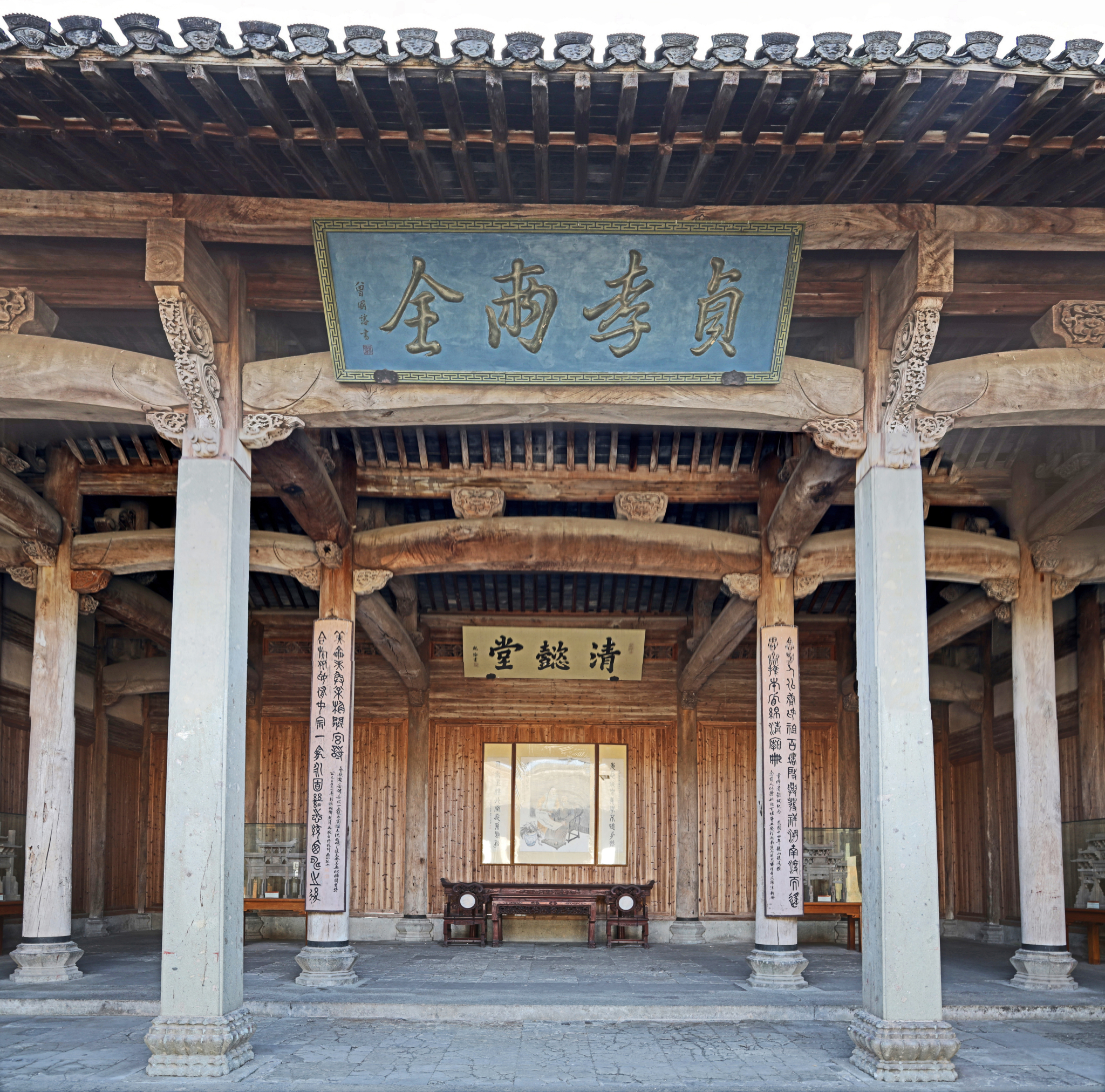 清懿堂(女祠)清懿堂,俗称女祠,建于清嘉庆初年。清懿堂女祠建于清代嘉庆年间,是 村大盐商鲍氏二十四世祖鲍启运创建的,借以纪念为徽商的辉煌同样作出牺牲和贡献的鲍氏妇女。【清懿堂】3字巨匾高悬在享堂照壁正中,出自书法家鲍(左钅加珍右)之手,另一块【贞孝两全】的横匾,则是清代名人曾国藩所书。堂以【清懿】为名,取的是【清白贞烈、德行美好】之意,是一曲妇女的颂歌。