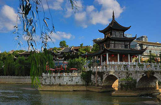 甲秀楼位于南明河的一块巨石上。它建于明初。由于战争,嘉秀大厦经历了多次重建和维护,现在仍然屹立不倒。这座建筑分为三层。建筑物的顶部可以看到河的景色和城市河岸的美丽夜景。9、高坡
