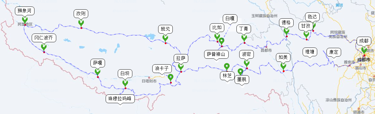 1、如果是自驾可按照这个路线行驶:成都 - 色达 (佛学院)- 甘孜 - 德格 -新路海- -白嘎-萨普神山- - -羊卓雍错-日托寺- -卡若拉冰川-珠穆朗玛峰(白坝)- - (塔尔钦)- (狮泉河)-改则- -纳木错- -思金拉错湖- - - -如美- 理塘 -塔公草原-墨石公园- 康定 - 成都2、如果是公共交通前往直飞拉萨路线如下: -羊卓雍错-日托寺-卡若拉冰川-珠穆朗玛峰(备选)--纳木错-3、注意事项包含但不限于:高原反应、自驾车辆建议、边防证明、衣物建议、摄影装备等情况如下:⑴自驾车辆建议:在初次自驾进藏前,我们都会对自己的小排量和非越野车信心不够鉴定,但以目前"川藏线"的基本道路情况,无论选择从318 or 317进藏,一台1.4L以上排量的家用轿车或城市SUV都能够出色完成本次任务(不包含想要挑战 中线、穿越无人区或行进未开发的艰难道路),这一路你会见到众多超出预判的车辆奔驰在风景的沿线(见过奔奔)。⑵高原反应:由于海拔高度曲线上升会随时出现高反,如果是初次到高原,并不清楚自己对海拔高度(缺氧)的可控程度,出发前一周就要开始做一些抗高反工作了,并且沿路实时配备氧气瓶,高反的难受程度真的会让人痛苦难堪⑶边防证明:如果想要西藏公共基础知识必背内容深度畅游 ,边防证明是必不可缺少的,边防证明的办理大致分为如下几种方式,建议大家出发前提前办理好"边防证明",降低旅途中繁琐的流程比例。西藏公共基础知识必背内容