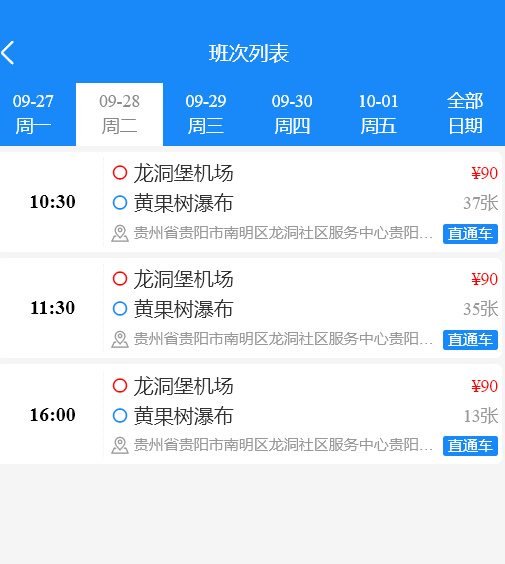 ——这段交通有两种方式1、从小七孔东门坐公交9元/人半小时多一点到汽车站,再坐大巴到,购票公众号或APP汽车票,全天车次如下,3小时到龙洞堡汽车站,离机场很近,打车9分钟,也有机场大巴,如果直接去机场返程是比较方便的。