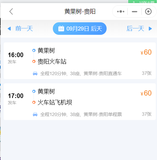 2、动车+景区专线车北站动车30分钟到西站,出站对面就是客运西站,看下图,到黄果树的景区专线车0730-1820流水发车,购票公众号或者APP-汽车票,车程35分钟。返程黄果树客运站到西站的专线车0700-1900半小时一班车,车票现场购买,无网售。 贵州省交通公共基础知识