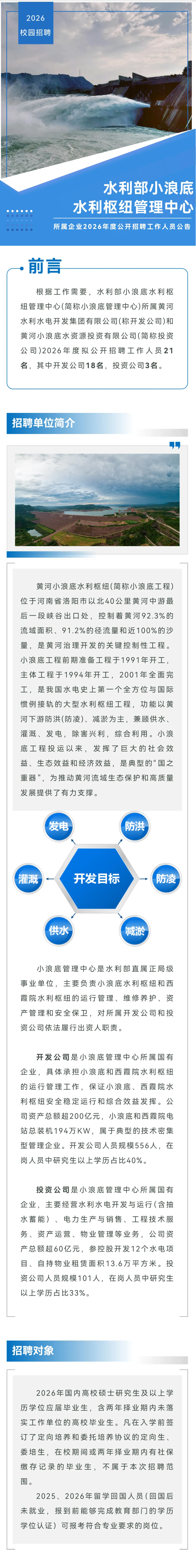 原始标题:水利部小浪底水利枢纽管理中心所属企业2026年度公开招聘工作人员公告