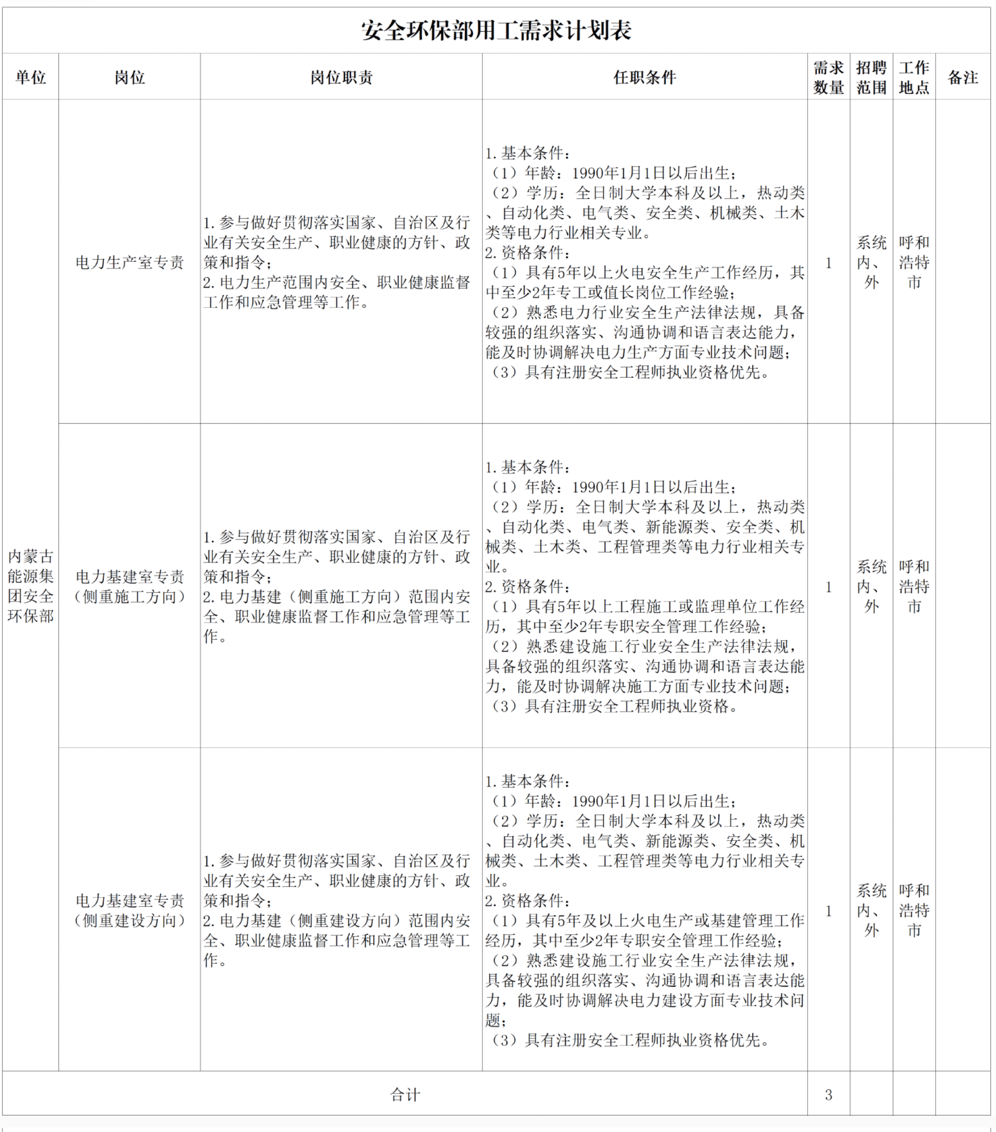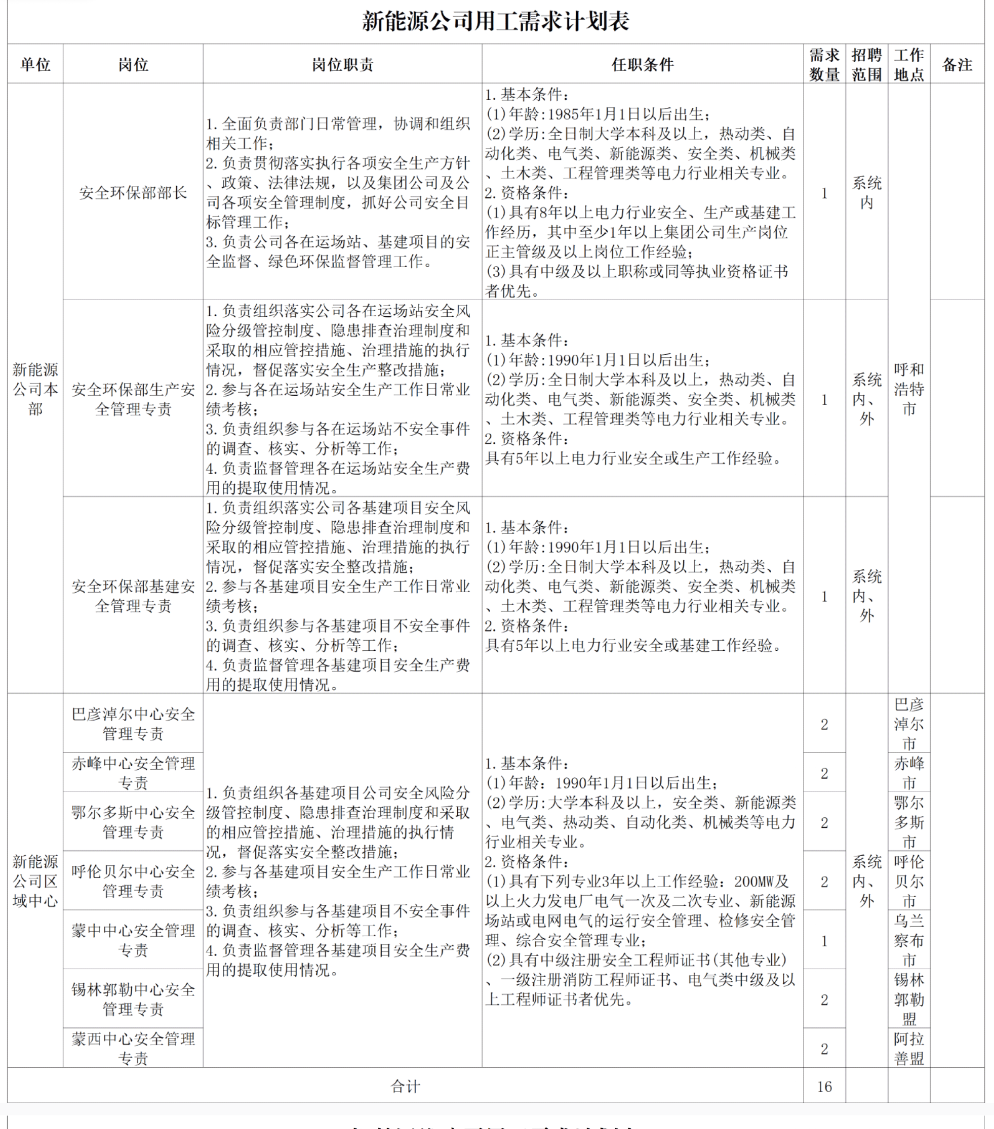 七、本公告由内蒙古能源集团有限公司人力资源部负责解释。