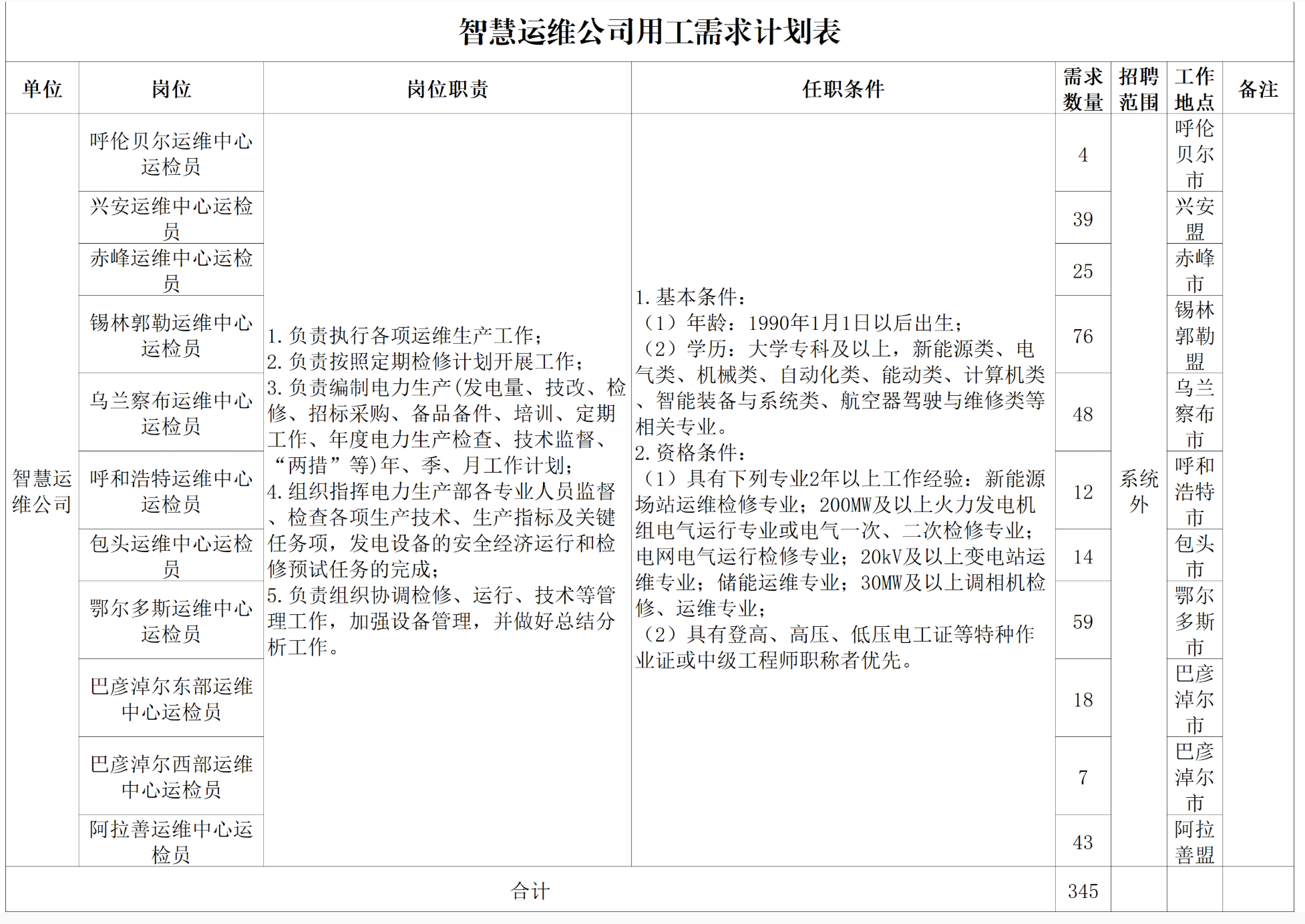 (一)本次智慧运维公司招聘人员为固定期限劳动合同用工,待遇按照内蒙古能源集团有限公司及智慧运维公司等有关规定执行。