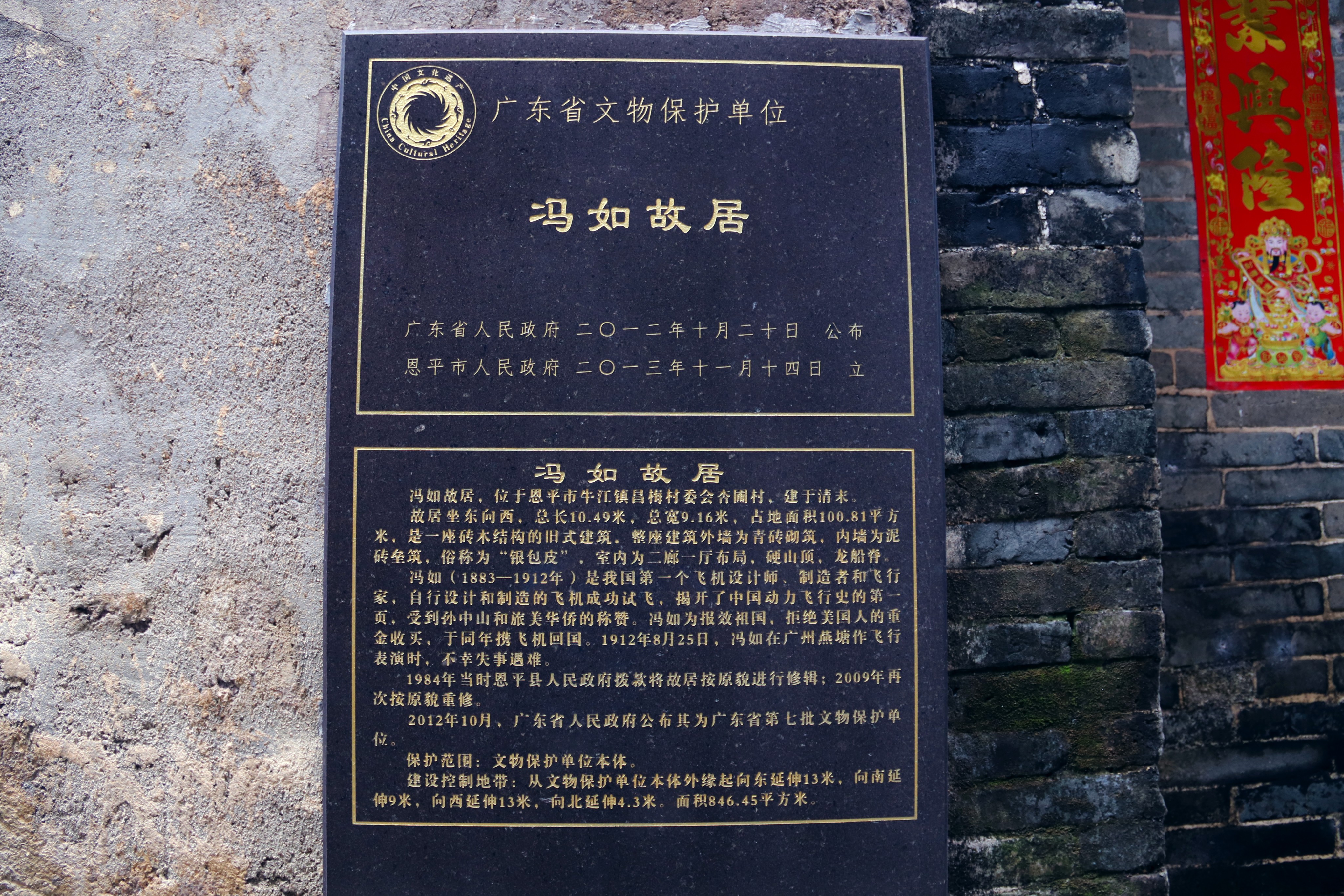 冯如是我国第一个飞机设计师、制造家、飞行师,被后人尊称为"中国始创飞行大家"和"中国航空之父"。来到恩平,不可不来伟人故居瞻仰一番,在表达对冯如先生敬意的同时,学习冯如先生丹心报国的精神。