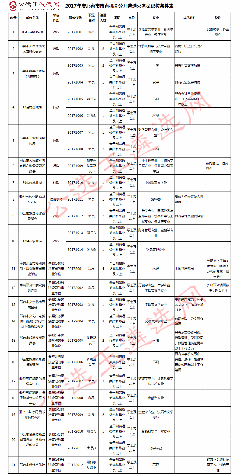 1、2018年度邢台市市直机关公开遴选公务员职位条件表