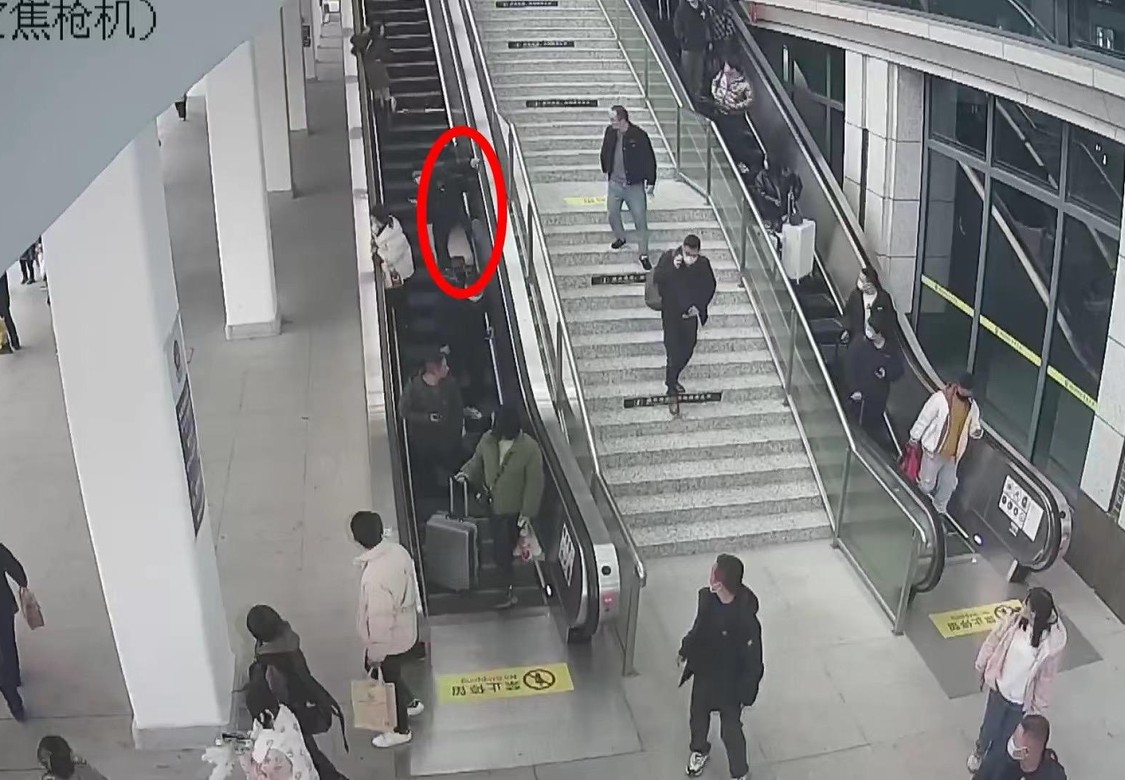 女子用火车站扶梯运行李砸伤旅客